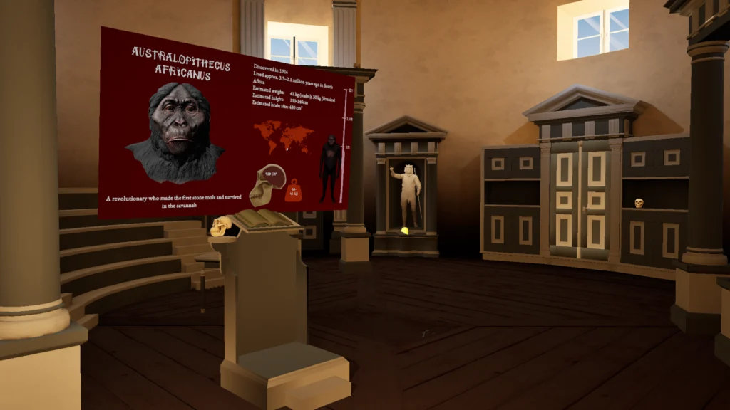 This is a hands-on learning experience that immerses students in the lives of our ancient ancestors. In this virtual journey, students interact with hominin species from Ardipithecus ramidus to Homo sapiens sapiens, discovering the arc of human evolution and how each species was revolutionary in its own time.